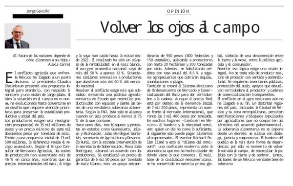 ● El conflicto agrícola que enfrenta México ha llegado a un punto decisivo. La presidenta Claudia Sheinbaum presentó una propuesta integral para atenderlo, con respaldo financiero y una visión de largo plazo. Si bien la situación en el campo no es nueva, ha evolucionado hasta convertirse en un desafío que requiere atención prioritaria para preservar la estabilidad productiva y social del país.